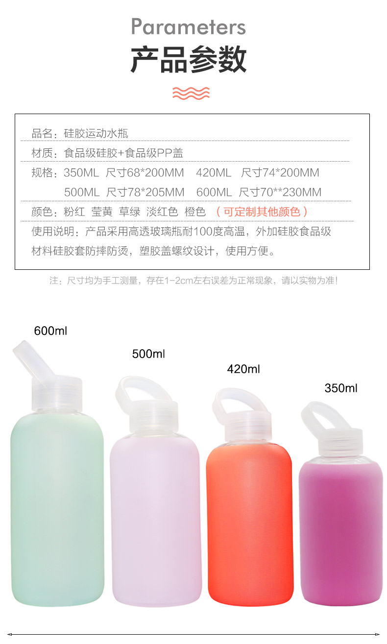 【材質(zhì)】:食品級(jí)硅膠+食品級(jí)PP蓋+耐熱玻璃